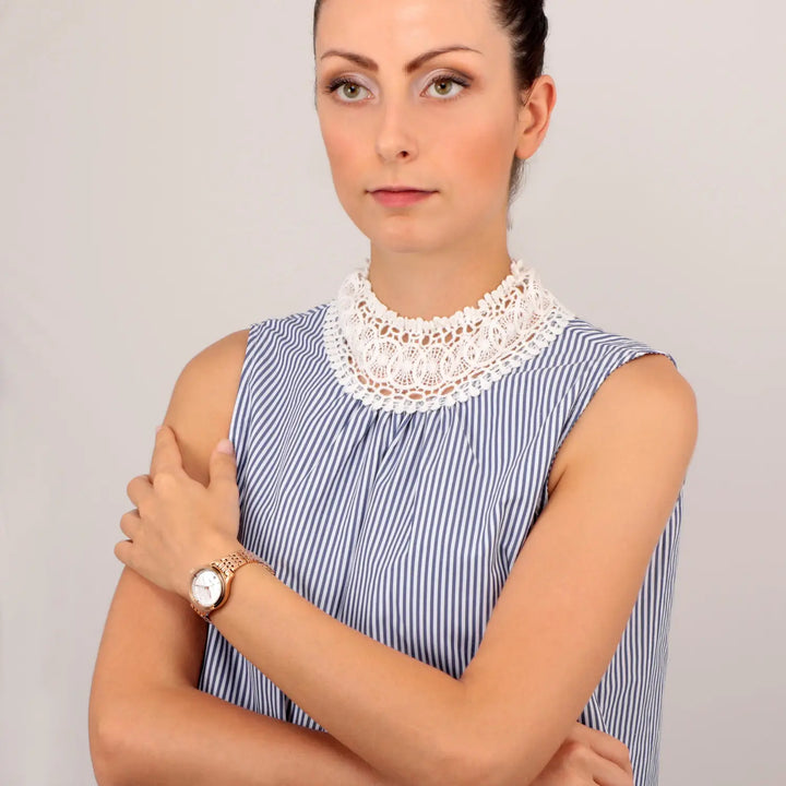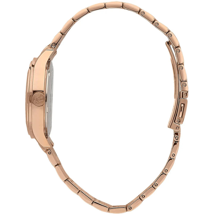 - Orologio con cassa in acciaio e con trattamento in pvd oro rosa, cristalli della dimensione di 39x32mm.