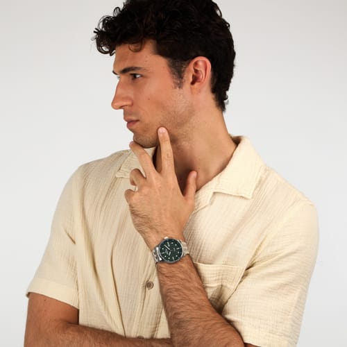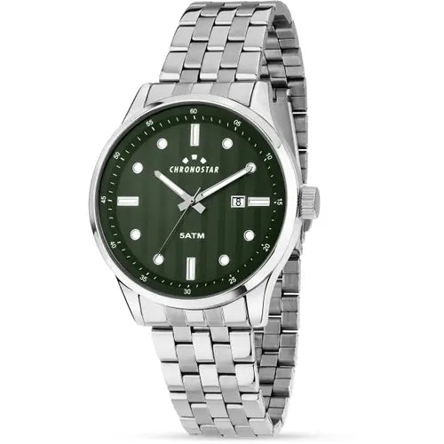 Genere: Uomo, Materiale e finitura cassa: Acciaio, Lega di metallo, Misura cassa: 43.50mm, Spessore cassa: 11.10mm, Finitura cassa: Lucido, Colore cassa: Silver, Vetro: Vetro minerale, Materiale cinturino: Acciaio, Colore cinturino: Silver, Chiusura: Fibbia deployante con pulsanti, Movimento: Quarzo, Water resistant: 5 atm, Garanzia: Ufficiale 2 anni Chronostar, Confezione: Originale Chronostar