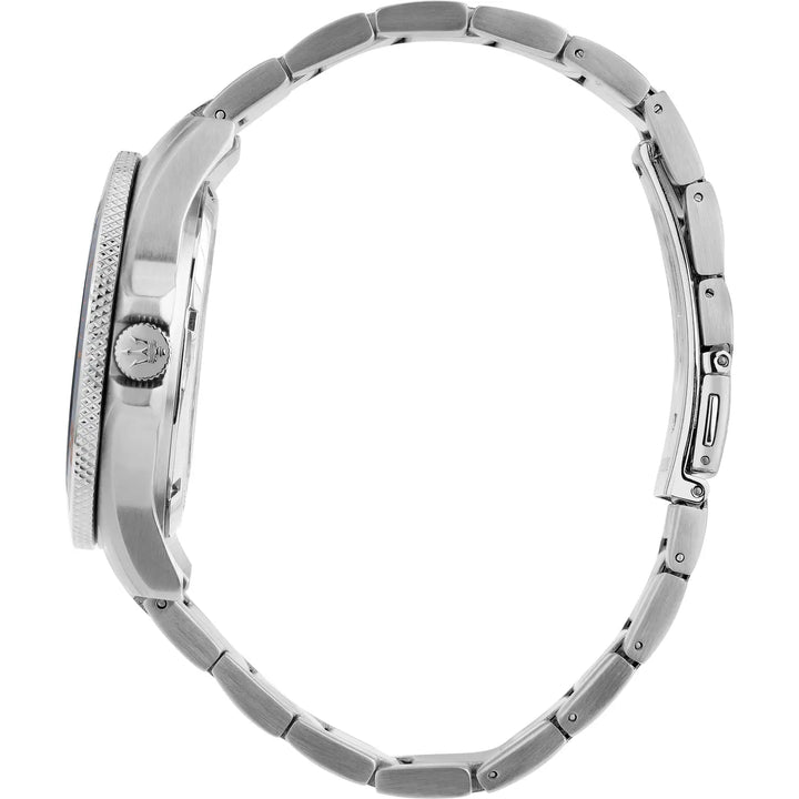 Cinturino in acciaio anallergico; chiusura deployante con pulsanti.